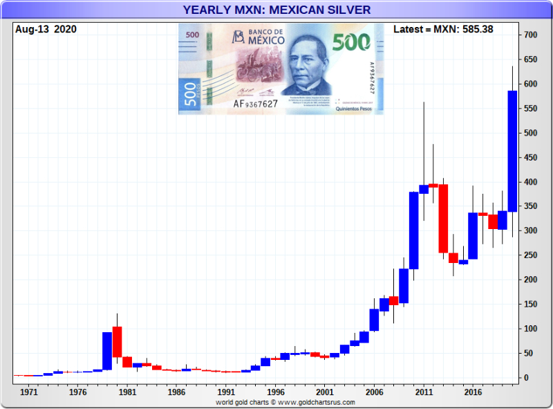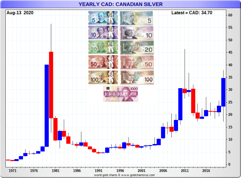 Finally to end today's tour around major global silver price charts. Have a gander at South Africa's silver price chart. I contend this is a similar look that all the previous annual silver price charts will have once similar silver price runaway breakouts occur later this decade.